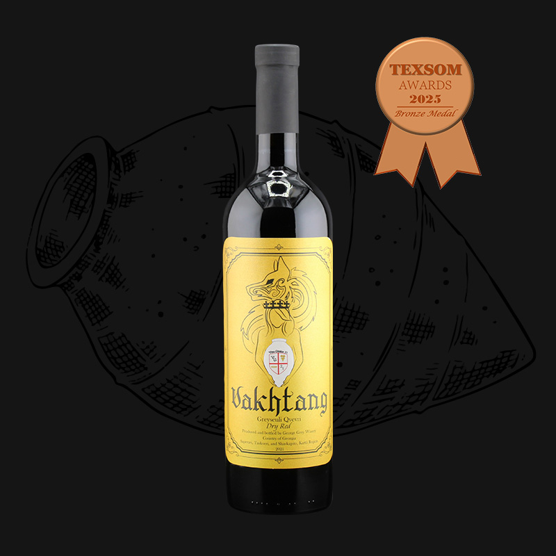 Made from Saperavi, Tavkveri and Shavkapito grapes in the 8000 year old ancient qvevri claypot method. This rare and special gold label wine is a bold red blend of pomegranate, cherries and berries. The unforgettable impressions and outstanding aroma transports you to the region of Kartli with ever sip.